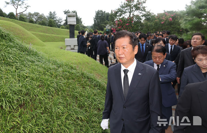 김대중 전 대통령 묘역 참배 마친 정청래 신임 대표