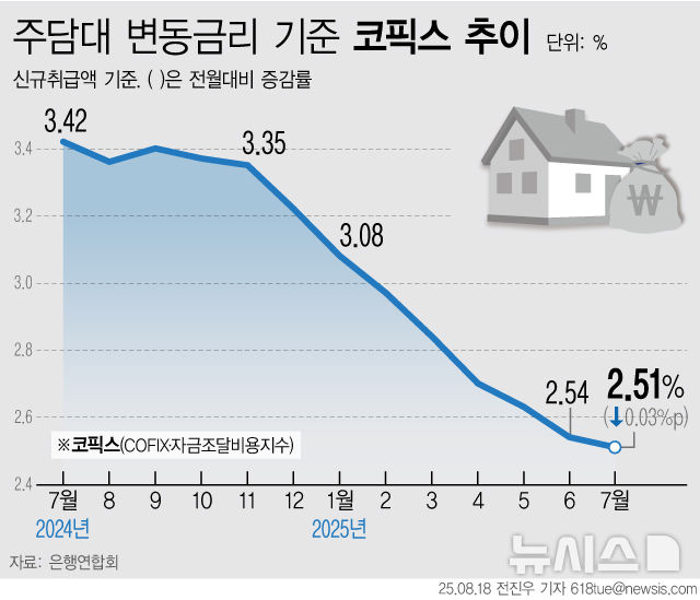 [그래픽] 주담대 변동금리 기준 '코픽스' 10개월 연속 하락