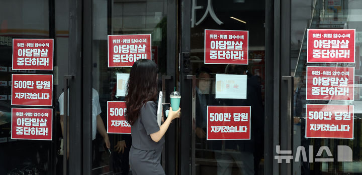 압수수색 피켓 부착된 국힘 당사