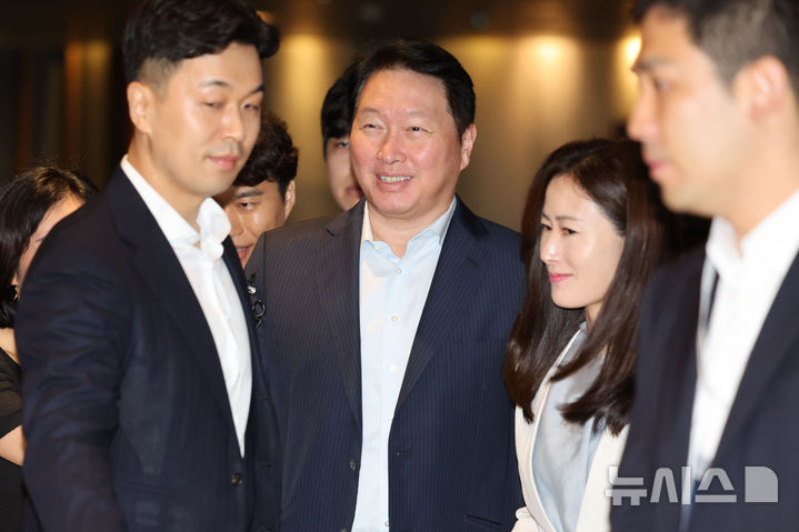 취재진 질문 받는 최태원 SK 회장