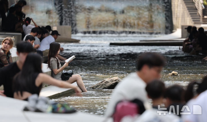 처서가 지나도 여전히 더운 서울, 청계천에서 더위식히는 시민들