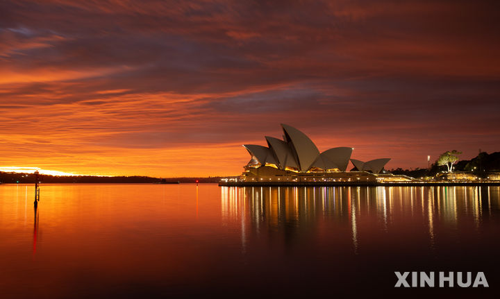 붉은 아침노을에 깨어나는 오페라하우스