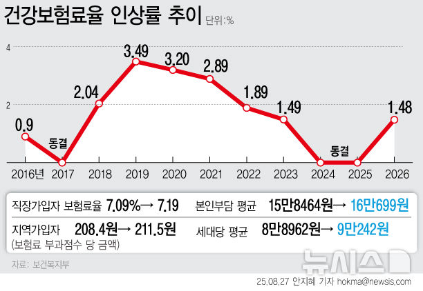 [그래픽] 내년 건강보험료율 1.48% 인상