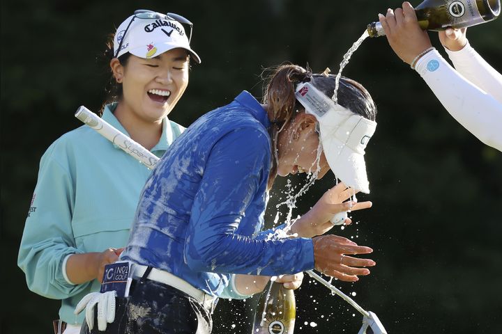최종 퍼트 마치고 웃음 짓는 미란다 왕