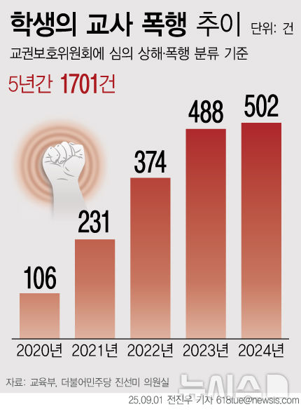 [그래픽] '학생이 선생님 폭행' 5년간 1700건 넘어