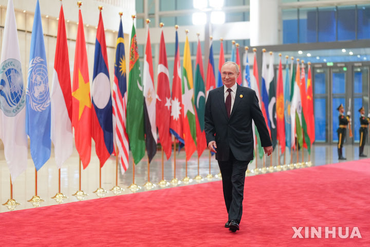 中 톈진 환영 연회장 도착한 푸틴 대통령