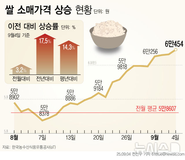 [그래픽] 쌀 20㎏ 소비자가격 '심리적 마지노선' 6만원 넘어