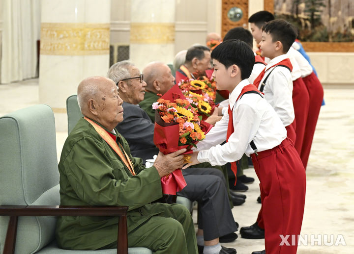 전승절 기념 공연 전 노병들과 인사하는 시진핑