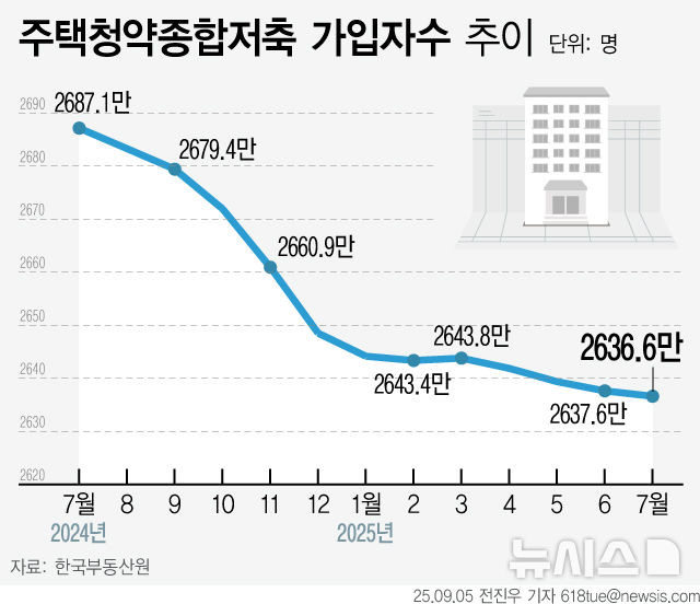 [그래픽] 외면받는 청약통장…가입자 '뚝뚝'
