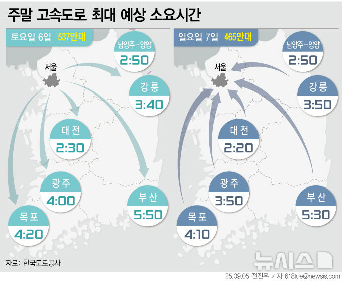 [그래픽] 주말 비 예보에 고속도로 교통량 감소