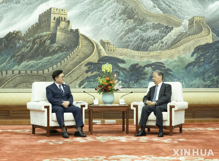 자오러지 상무위원장과 면담하는 우원식 국회의장