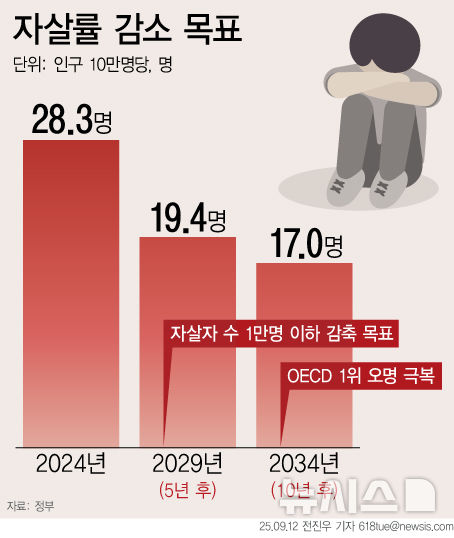 [그래픽] 정부, 자살률 10년 내 28.3명→17.0명으로 목표