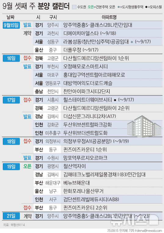 [그래픽] [분양캘린더] 9월 셋째 주 1749가구 분양예정