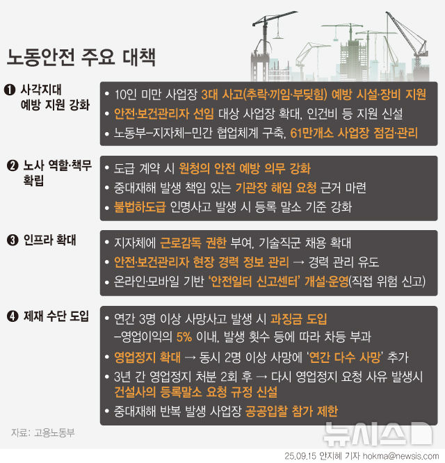 [그래픽] 산재사망 반복사고 '과징금'…건설사는 등록말소도