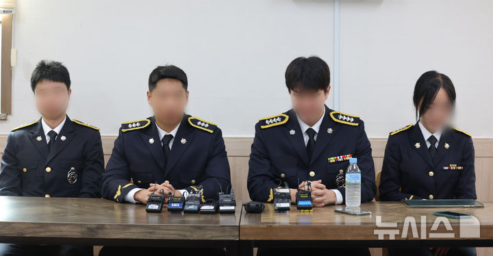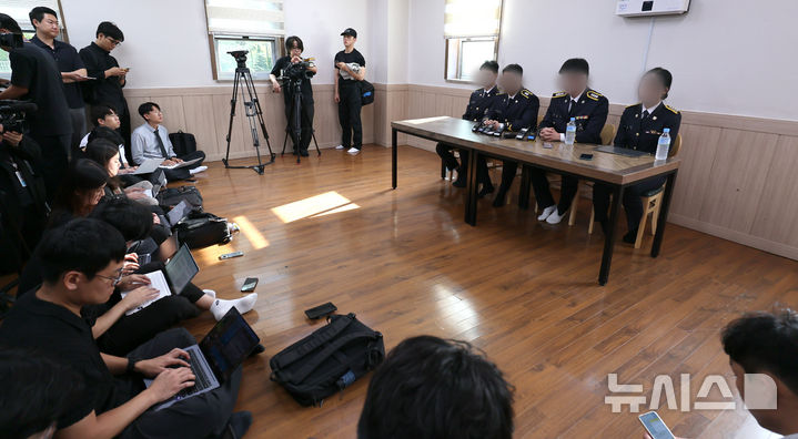 기자회견하는 고 이재석 경사 팀원들