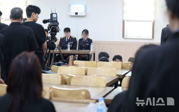 해경 영흥파출소 팀원 기자회견 지켜보는 고 이재석 경사 유족들