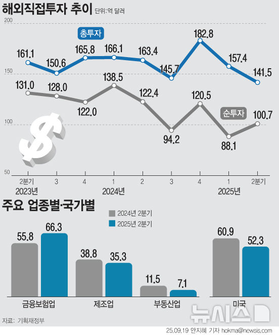 [그래픽] 2분기 해외직접투자 13.4% 감소…대미투자 14.2%↓
