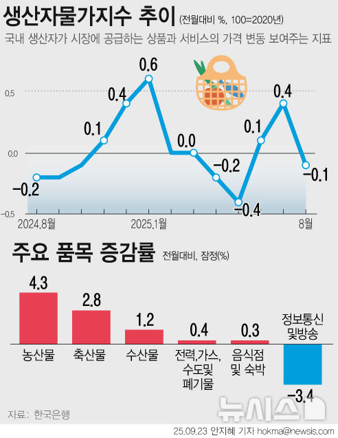 [그래픽] SKT 요금 인하에 생산자물가 ‘석 달 만에 하락’