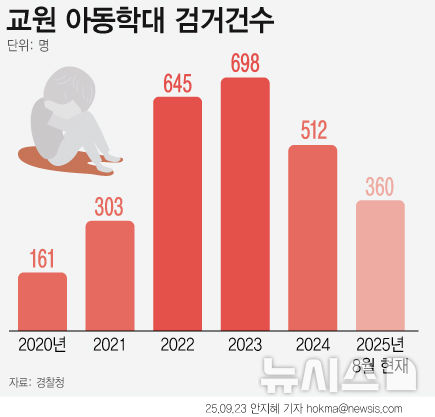 [그래픽] 지난해 아동학대 교원 검거 건수 27% 감소