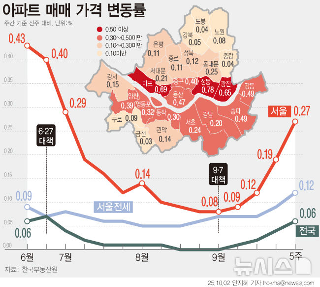 [그래픽] 서울 집값 상승폭 4주 연속 확대