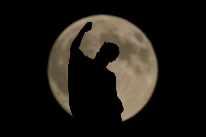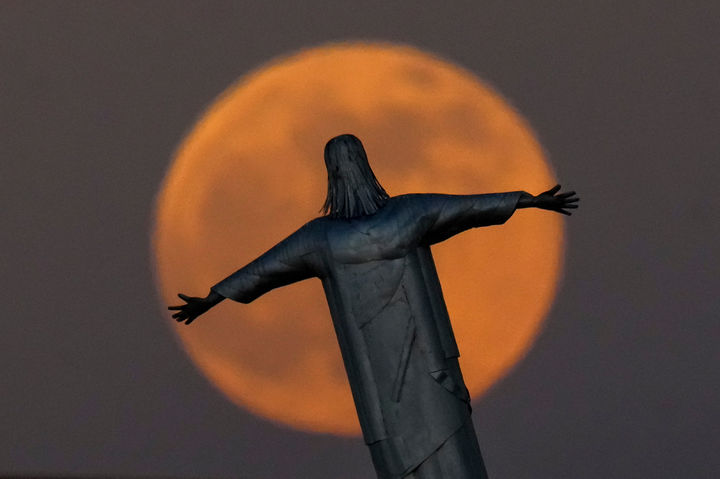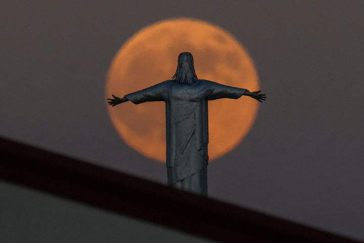 십자가 뒤로 성스럽게 떠오르는 슈퍼문