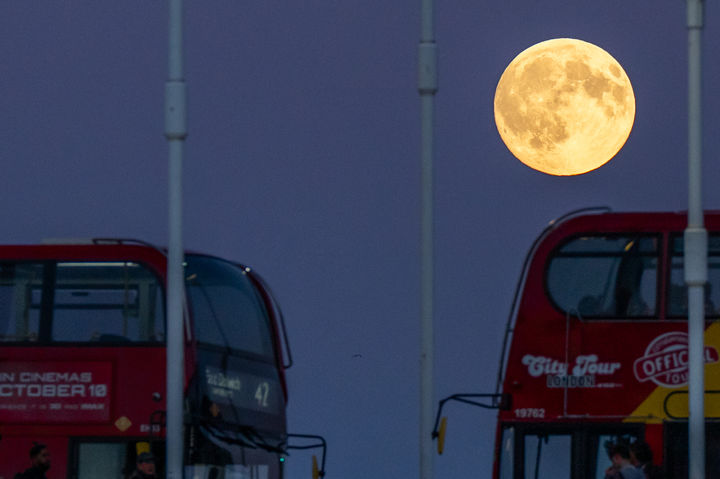 런던 타워브리지 뒤로 떠오르는 슈퍼문