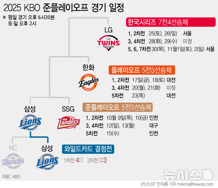 [그래픽] 2025 KBO 준플레이오프 경기 일정