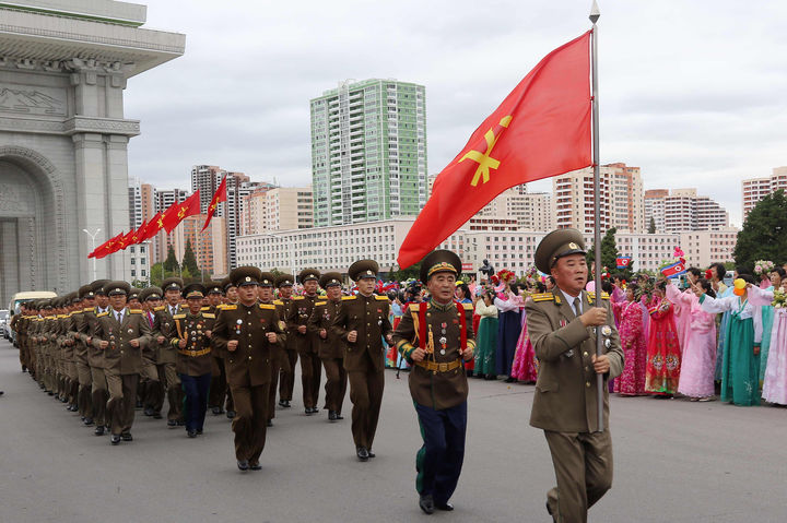 北 '충성의 편지' 증정 모임에 입장하는 참석자들