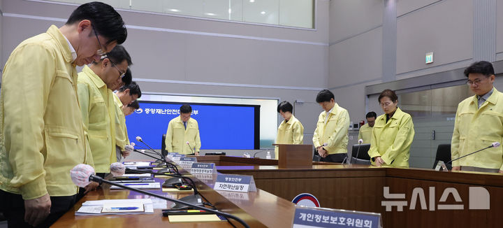국정자원 화재 중대본 회의, 추모 묵념하는 윤호중 장관과 참석자들