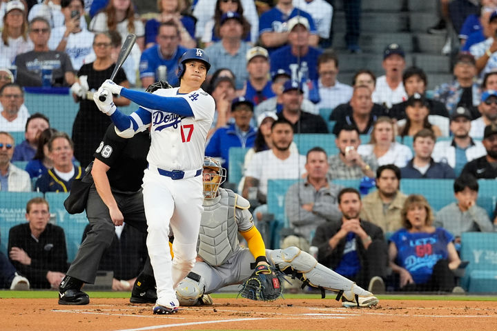 NLCS 4차전 선두 타자 홈런 치는 오타니