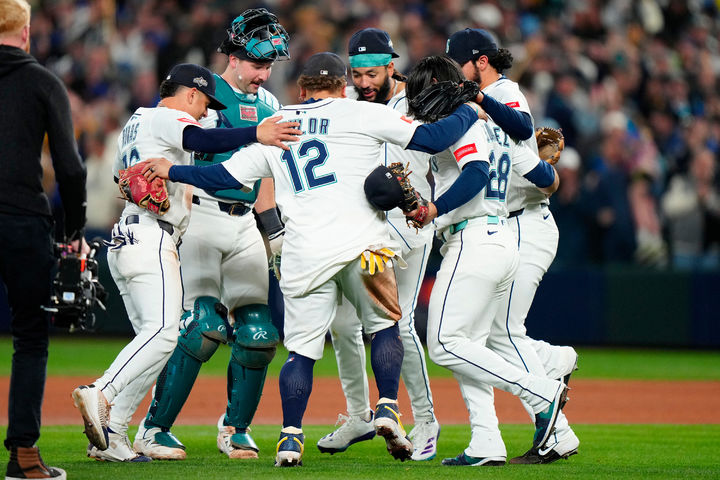 ALCS 5차전 승리 자축하는 시애틀 선수들