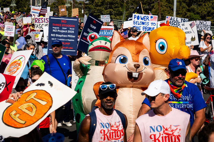 타임스퀘어 광장 메운 '노 킹스' 시위대
