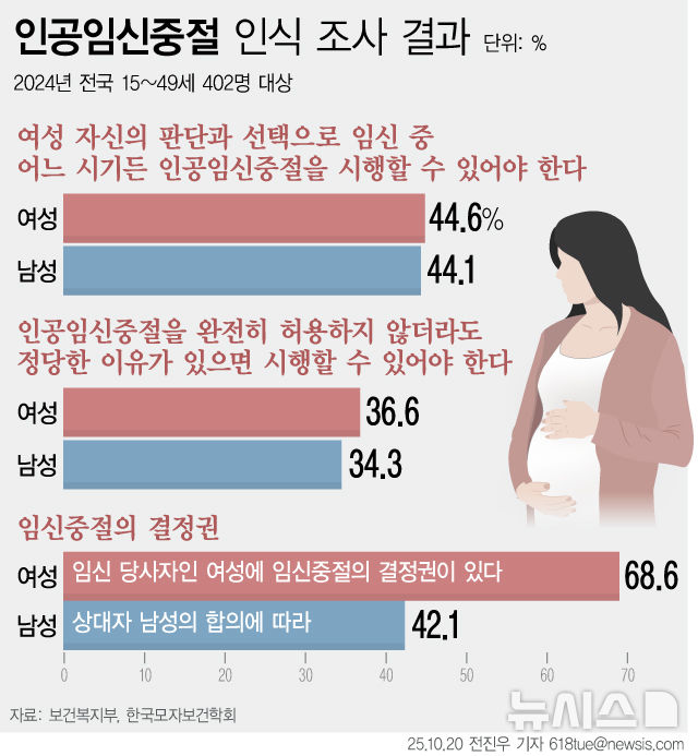 [그래픽] 10명 중 4명 "여성 판단으로 임신중절할 수 있어야"