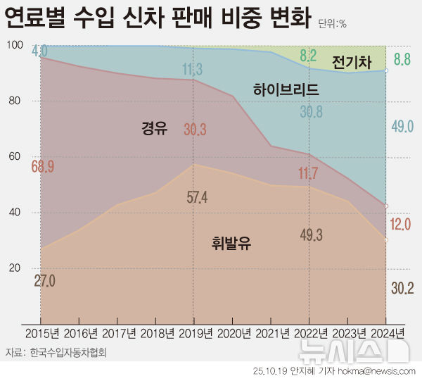 [그래픽] 디젤차 사라지고, 하이브리드 판매 증가