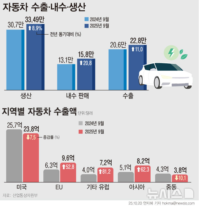 [그래픽] 자동차 생산·수출·내수 '3관왕'…美 수출은 7.5% 감소