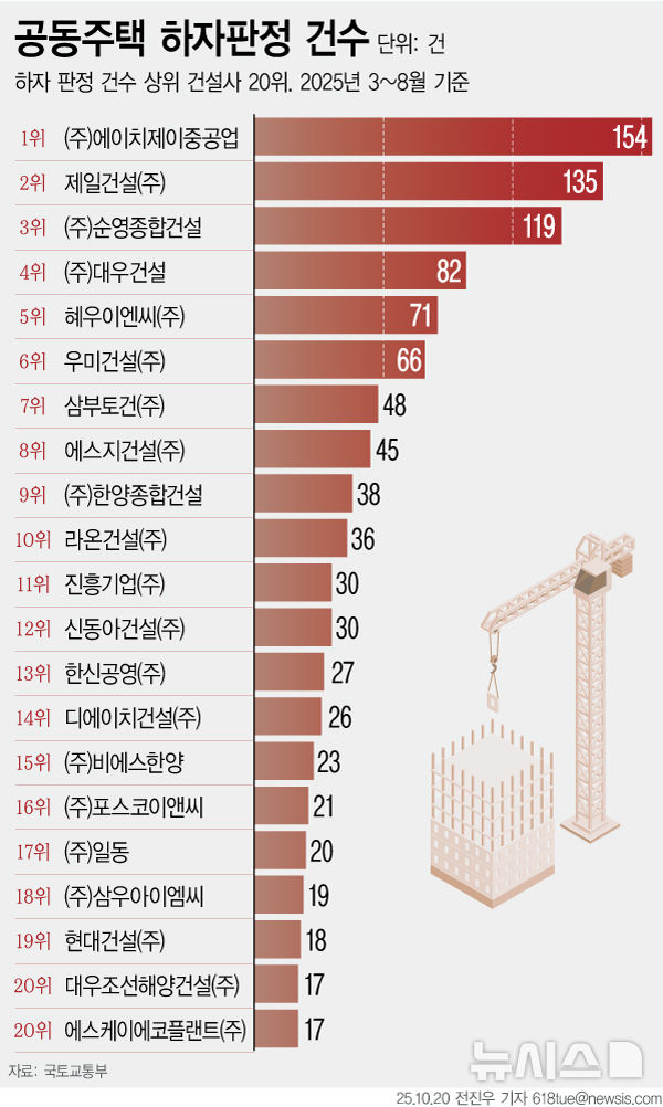 [그래픽] 공동주택 하자 판정 가장 많은 건설사는?