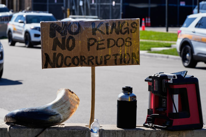 트럼프와 엡스타인 비난하는 시위대 손팻말