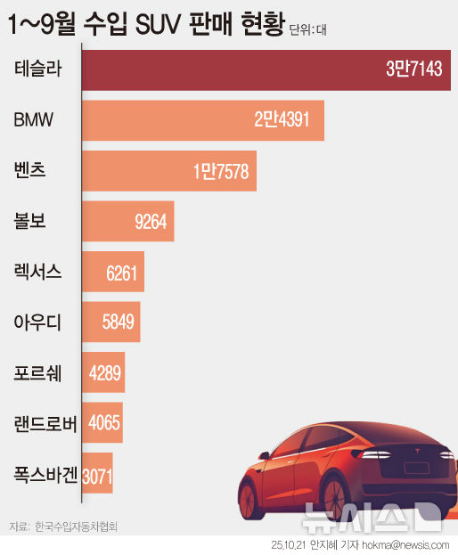 [그래픽] 테슬라, 수입 SUV 시장 독주