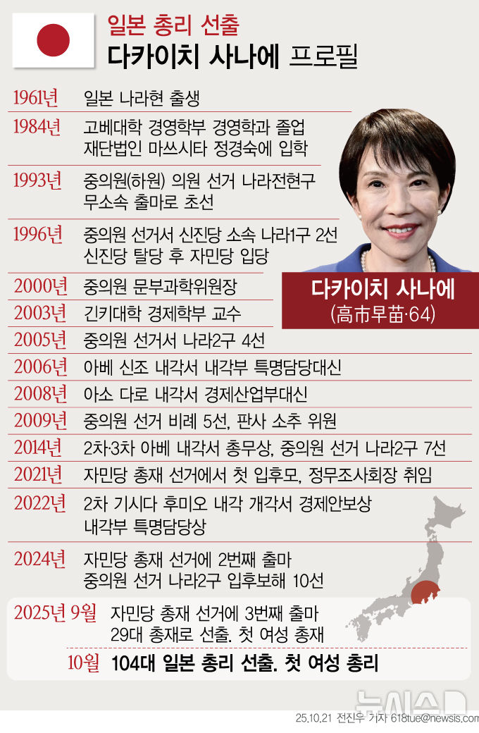 [그래픽] 일본 첫 여성 총리, 다카이치 사나에 프로필