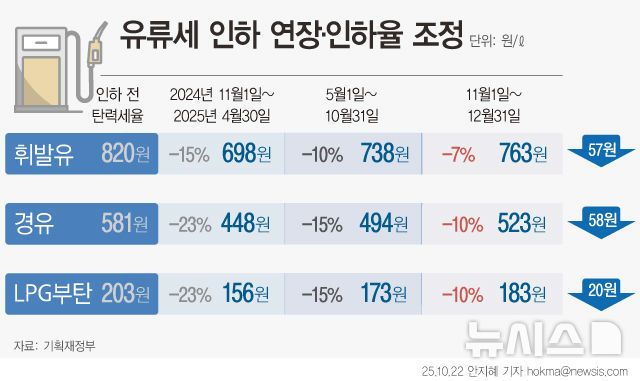 [그래픽] 유류세 인하 일부 환원…휘발유 25원·경유 29원↑