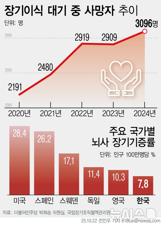 [그래픽] 장기이식 대기 중 사망 4년새 1.4배 증가…기증자수 감소세