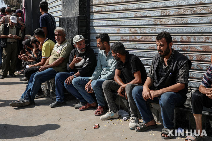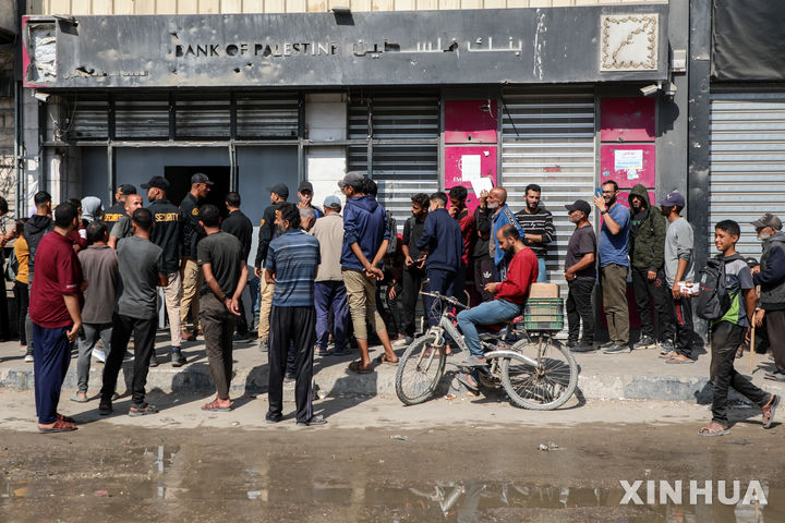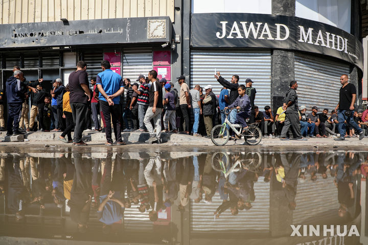 가자시티 은행 앞에 줄 선 팔레스타인 주민들