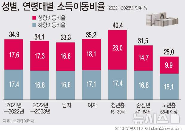 [그래픽] 소득 상향이동 17.3%…저소득 70%가 하위 20% 머물러