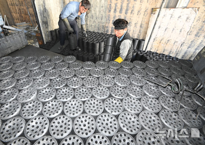 쌀쌀한 날씨, 분주한 연탄 출하장