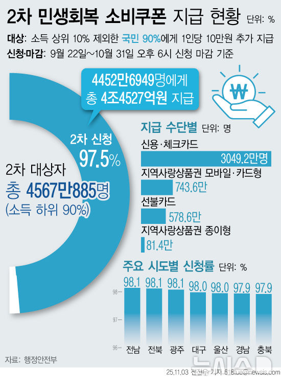 [그래픽] 2차 소비쿠폰, 최종 97.5% 신청…4조4527억 지급