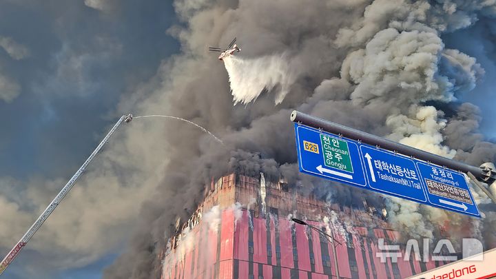 '검은 연기'로 휩싸인 천안 이랜드패션물류센터