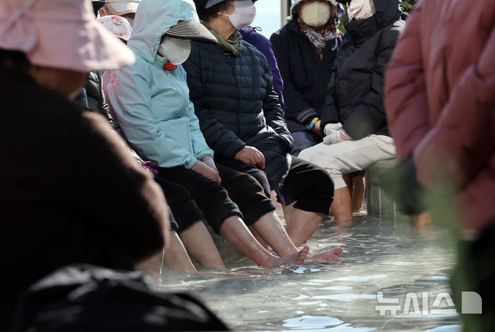 추위 속 바다 보며 즐기는 온천족욕
