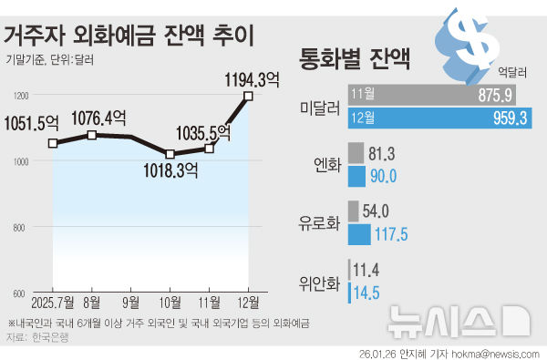 [그래픽] 12월 거주자외화예금, 158.8억달러↑…역대 최대폭 증가