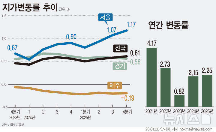 [그래픽] 작년 땅값 2.25% 상승 …서울 4.02%, 경기 2.32%
