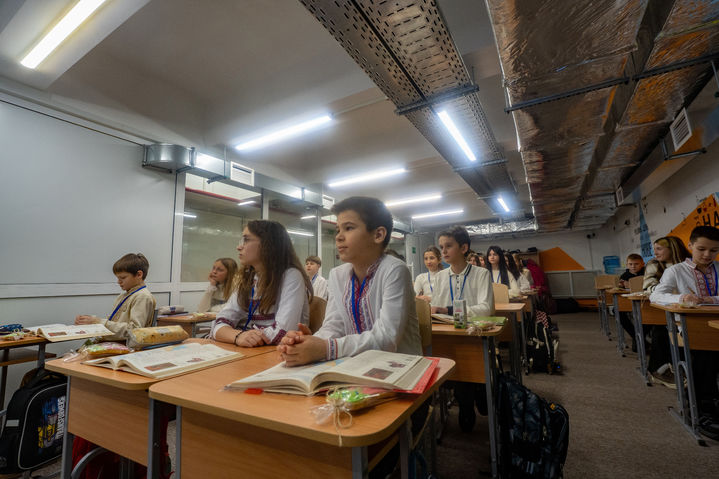 지하철역에서 수업하는 하르키우 어린이들